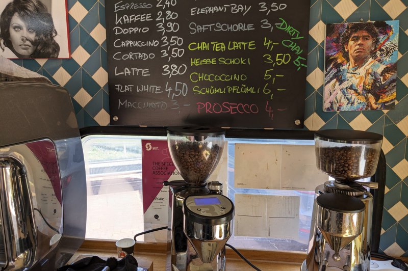 Es gibt Kaffeespezialitäten - immer auch saisonale Variationen - und Erfrischungsgetränke mit und ohne Alkohol.