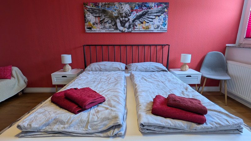 Die Wohnung kann zur Kurzzeitmiete ganz gemietet werden für maximal 4 Gäste, alternativ kann aber auch nur eines der beiden Schlafzimmer gemietet werden - In dem Fall kann die Wohnung mit einem anderen Gast geteilt werden.