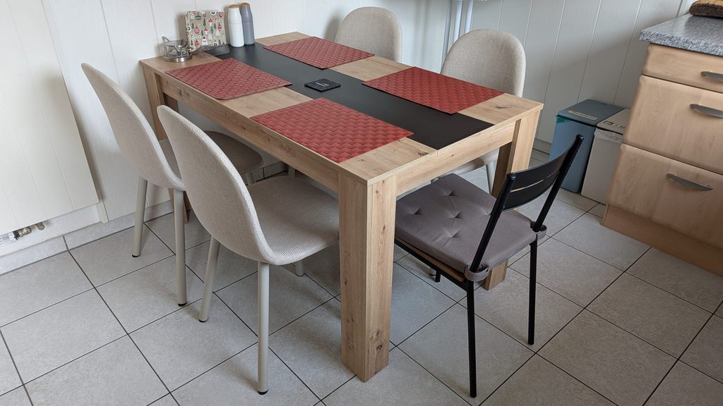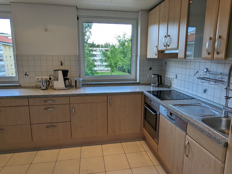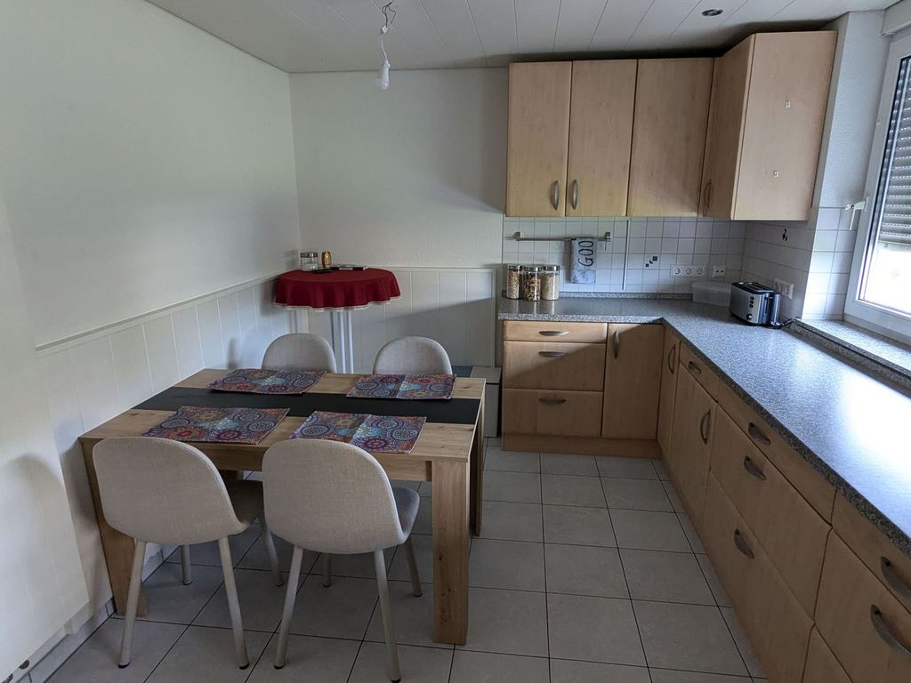 Große Wohnküche mit Kaffeemaschine, Wasserkocher, Toaster und Basics zum Frühstücken. Die Küche ist komplett ausgestattet, inkl einem Reiskocher.